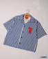 𝐇𝐀𝐕𝐀𝐍𝐀 𝐒𝐓𝐑𝐈𝐏𝐄𝐒 𝐁𝐔𝐓𝐓𝐎𝐍 𝐔𝐏有別於哈瓦那襯衫的常見柔軟絲質面料,採用了挺面的斜紋布材質,整件輪廓感更強烈,版型則是選用短板設計,提升俐落度,小細節胸口的精細電繡,加上背後的𝐅𝐨𝐮𝐫 𝐇𝐮𝐧𝐧𝐢𝐝標語,可見𝐘𝐆對於自己品牌有一套獨到見解